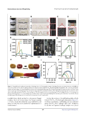 curves of each ratio of printed hydrogel inks. (F) Optical image of the bulk and printed PVA/TA /PAA hydrogel mechanical properties. (G) Stress–strain