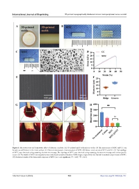 Figure 2. Microstructure and hemostatic effect of chitosan conduits. (A) 3D-printed mold with micron tracks. (B) The appearance of MTC and CC can