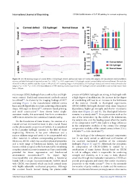 Figure 10. (A) HE staining images of corneal defect, CG hydrogel-treated, and normal tissue at 8 weeks after surgery. (B) Quantitative results(epithelial,