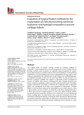 cartilage defects. Int J Bioprint, implantation, and (iii) be reliably fixed within cartilage defects during surgery. In this