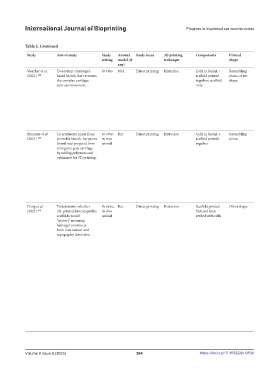 Study Aim of study Study Animal Study focus 3D printing Components Printed Printed Cell nature/type Notable post- Assessment Findings Limitations and suggested