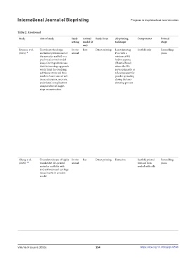Study Aim of study Study Animal Study focus 3D printing Components Printed Printed Cell nature/type Notable post- Assessment Findings Limitations and suggested