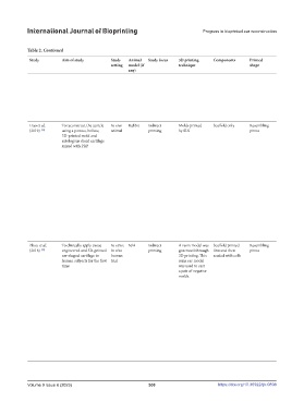 Study Aim of study Study Animal Study focus 3D printing Components Printed Printed Cell nature/type Notable post- Assessment Findings Limitations and suggested