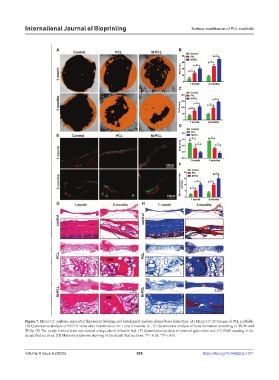 Figure 7. Micro-CT analysis, sequential fluorescent labeling, and histological analysis of new bone formation. (A) Micro-CT 3D images of PCL scaffolds.