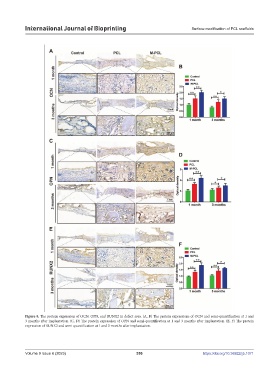 3 months after implantation. (C, D) The protein expression of OPN and semi-quantification at 1 and 3 months after implantation. (E, F) The protein