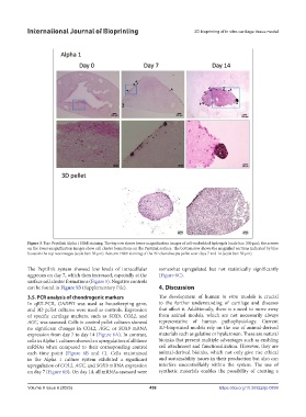 Figure 3. Top: PeptiInk Alpha 1 H&E staining. The top row shows lower-magnification images of cell-embedded hydrogels (scale bar: 200 µm); the arrows