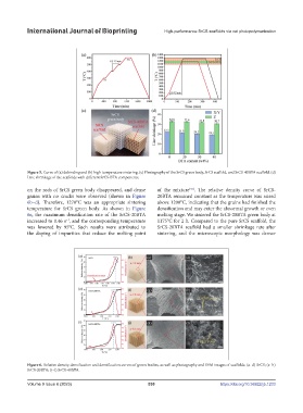 Figure 5. Curve of (a) debinding and (b) high-temperature sintering. (c) Photography of the SrCS green body, SrCS scaffold, and SrCS-40BTA scaffold. (d)