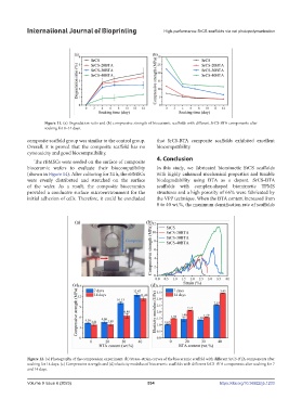 Figure 11. (a) Degradation ratio and (b) compressive strength of bioceramic scaffolds with different SrCS-BTA components after