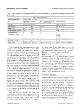 Table 2. AJ®P print parameters and postprocess used for the print investigation for 3D microstructures, divided by ink type and