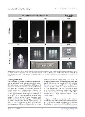 printing is collagen-based, and more specifically a Col- the 3D-CJD one. Col-Hap ink can be 3D-CJD printed in