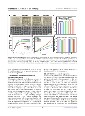 overall interaction between each bioink and HepG2 cells, and growth in a 3D environment with the potential to