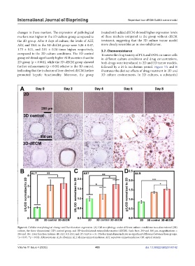 2D group (p < 0.001), while the 3D-dECM group showed both drugs were introduced to 2D and 3D tumor models,