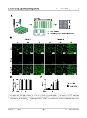 Figure 4. Cell viability and proliferation in 3D-printed PCI3D modules. (A) Schematic of PCI3D module fabrication: PCL bundles (gray) and cell-laden