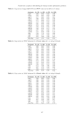 Table 3. Gap scores on UFLP instances for different values of L on using 4 threads