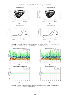 Figure 5. The time series of (1) shown in (a), (b) and the controlled system (2) shown in (c),