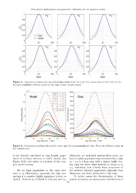 Figure 6. Comparison between the model output and the (non-normalized) data. Note the different scales on