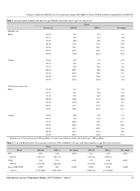 Table 2. Average annual mortality rate and average disability prevalence rate by age, sex and period