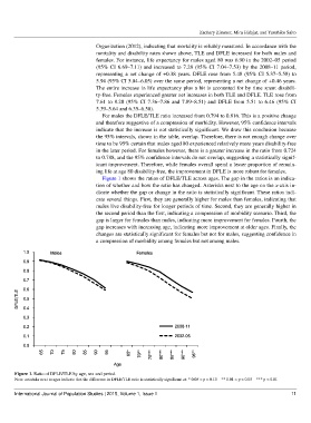 Figure 1 shows the ratios of DFLE/TLE across ages. The gap in the ratios is an indica-