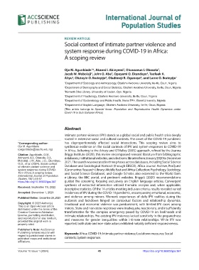 of intimate partner violence and Database and Sociological Abstract (through EBSCO), Africa Journal Archive, ProQuest