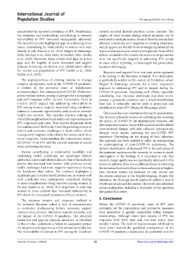 of COVID-19 on IPV and the system’s response is crucial or underreporting of post-COVID-19 experiences. The