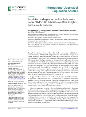 https://doi.org/10.36922/ijps.2535 on Population and Reproductive Health Dynamics under COVID-19 in SSA that was