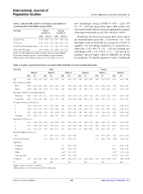 Table 3. Logistic regression of factors associated with telehealth use between male and female