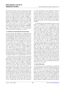rating active aging. This concept has been partially assessed to the intentions when conceptualizing active aging as a