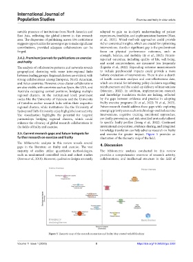 between leading groups. Regional clusters are evident, with holistic evaluation of interventions. There is also a dearth