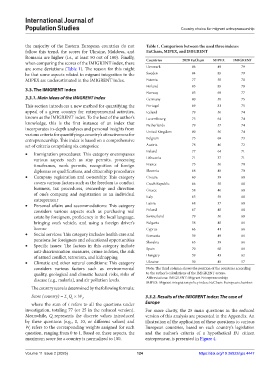 Score (country) = ∑ Q × W, i 3.3.2. Results of the IMIGRENT index: The case of