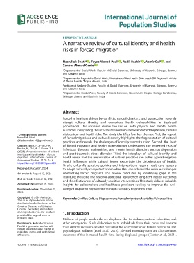 Copyright: © 2024 Author(s). Keywords: Conflict; Culture; Displacement; Forced migration; Mortality; Vulnerabilities