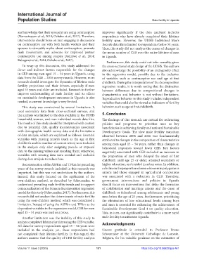 on sustainable development outcomes in Uganda is also Reproductive behavior in this study includes independent