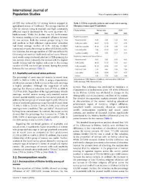 The decomposition of lifetime fertility showed an average 4/1,000 women. Further, the reduction in the percentage