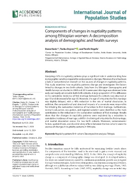 Accepted: July 24, 2024 Keywords: Nuptiality pattern; Birth cohort; Decomposition analysis; Ethiopia
