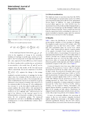 In the model specification shown above, ∆=Y Y 1 −Y 2 the two birth cohorts, the percentage of women living in