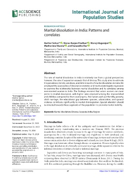 International Journal of Population Keywords: Marital dissolution; Divorce; Separate; India; Region