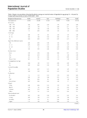Table 5. Region‑wise prevalence of martial dissolution among ever‑married women of reproductive age group (15 – 49 years) by