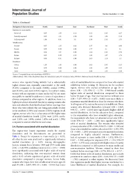 3.4. Factors associated with marital dissolution primary education (OR = 1.095; 95% CI = 1.004 – 1.194) and