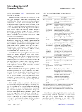 societal (macro) levels. Table 1 summarizes the factors Table 1. Factors related to fertility intentions found in
