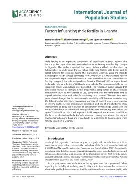 https://doi.org/10.36922/ijps.461 Keywords: Male fertility; Fertility; Uganda