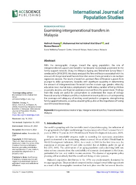 Journal of Population Studies, Keywords: Intergenerational relationships; Intergenerational transfers; Financial transfers;