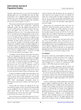 primary level (<10 years), secondary level (10 – 13 years), values ranged from 8 (<0.01%) for psychosocial work