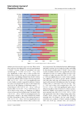 Model 4 (HR: 1.33, CI: 1.02 – 1.74, p < 0.05). However, the dying during infancy than children in the reference groups.