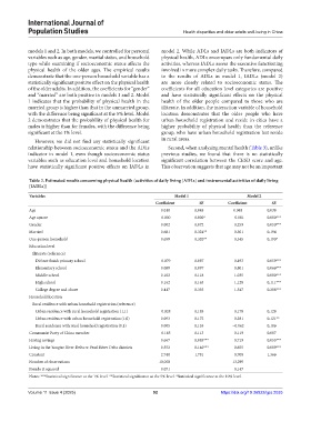 models 1 and 2. In both models, we controlled for personal model 2. While ADLs and IADLs are both indicators of