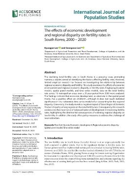 https://doi.org/10.36922/ijps.8157 low fertility. In addition, the study offers policy measures to address the challenge of