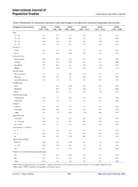 Table 2. Distribution of contraceptive prevalence rate trend changes in sexually active women by background characteristics