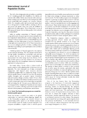 on participatory planning. The city engages communities were highlighted as key obstacles to women’s engagement