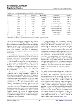 difficulties. Surveys were conducted in the children’s native level of education, type, and pattern of disability, distance