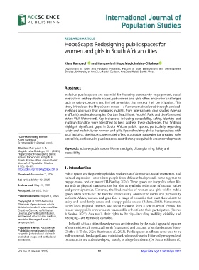 Copyright: © 2025 Author(s). safely and confidently access and occupy public spaces (Ralane, 2023). Harassment,