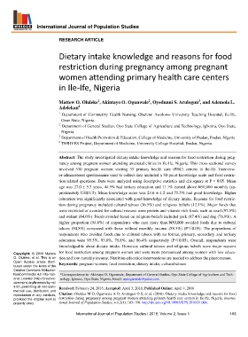 provided the original work is restriction during pregnancy among pregnant women attending primary health care centers in Ile-Ife, Nigeria. Interna-