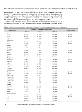 Table 6. Association between avoidance of food based on cultural taboos and socio demographic characteristics of respondents